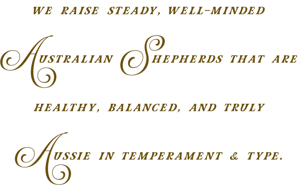 We believe beauty runs deeper than coat and eye color. While we know many desire only baby blues ~ and we will produce our fair share ~ our priority is breeding for what truly matters—a sound mind, a steady temperament, quality of structure and a heart devoted to family. We seek families who value the lifelong joy of a well-bred Australian Shepherd—one whose soul shines brighter than any shade of blue.